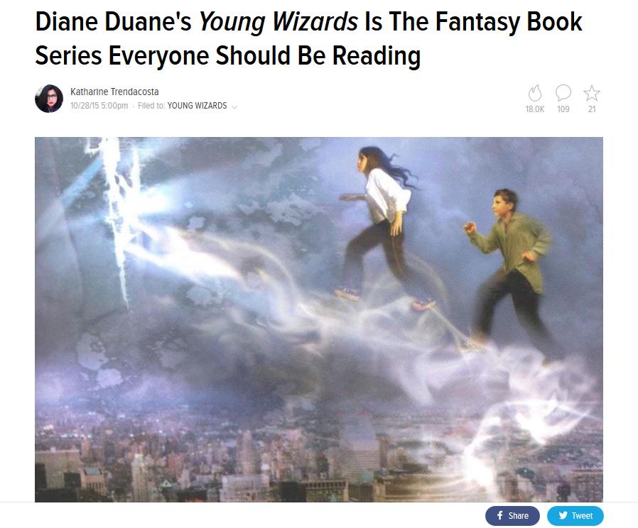Diane Duane’s Young Wizards series is a truly great fantasy universe. It’s so perfect, I actually don’t want anybody to adapt it for TV or movies. Instead, everybody should hunt these books down and experience their greatness firsthand.